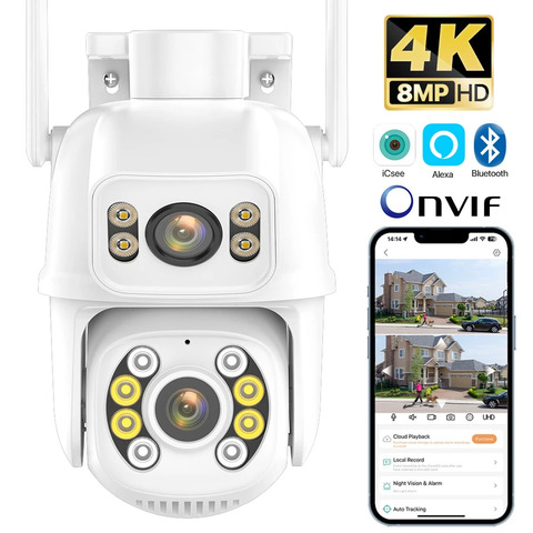 4K8MPデュアルレンズPTZWIFIカメラフルHDデュアルスクリーンAiヒューマンオートトラッキング屋外4MPセキュリティビデオ監視カメラTuya