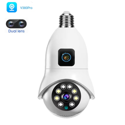 HD 듀얼 렌즈 4MP V380 프로 전구 IP 카메라 양방향 오디오 컬러 야간 투시경 2.4GHz WiFi 보안 무선 아기 카메라