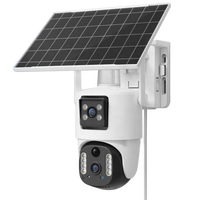 كاميرا مراقبة V380 تعمل بالطاقة الشمسية بتقنية 4G مع عدسة مزدوجة وتحكم عن بعد وكشف للحركة مع إنذار ضوئي